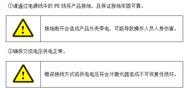 ①請通過電源線中的PE線將產(chǎn)品接地,且保證接地牢固可靠。