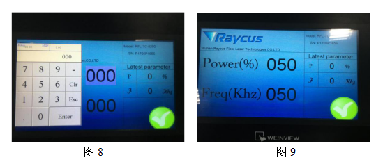 2)進(jìn)入?yún)?shù)設(shè)置頁面,Power(%)為百分比功率,F(xiàn)req(Khz)為頻率實(shí)際值,如圖7所示;
